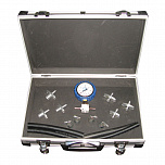 Тестер топливной системы впрыска. Позволяет диагностировать абсолютно любые топливные системы впрыска автомобилей (Европа, Россия, Азия, Америка и т.д.) и находить неисправный элемент методом измерения давления. Достоинством является высокоточный манометр, диаметром 63 мм, с ценой деления 0,1 BAR. В комплекте порядка 80 адаптеров.