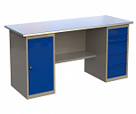 Верстак металлический двухтумбовый, PROFFI-3МД ТПС1Д. Размеры: 2000x830x700 мм, 1 тумба с 3 ящиками и 1 тумба с ящиками и дверью, замок, оцинк. столешница.сталь (6 мм) и фанера (24 мм). Нагрузка на столешницу 1 000 кг.
