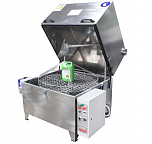 Диаметр корзины - 900 мм. Грузоподъемность корзины до 250 кг. Высота рабочего пространства – 500 мм. Итальянский насос! Сделано в России. Автоматическая мойка для сильно загрязненных деталей рекомендуется для специализированных мастерских и автосервисов по ремонту двигателей, КПП, АКПП, раздаточных коробок, редукторов легковых автомобилей, микроавтобусов и грузовиков, топливной аппаратуры, мойки лодочных моторов большой мощности.