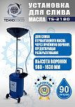 Установка для слива/откачки масла. 90 л. Комплектация: щупы - 2 жёстких + 4 гибких, контроль уровня, манометр (давление/вакуум), лоток. Подключение к пневмолинии - быстросъём.
