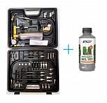 Комплект GX-100 стенд для форсунок инжектора промывочный. Переходники в комплекте – 35 шт. Для любых жидкостей. Для форсунок любого бензинового двигателя. Регулировка давления подачи жидкости. В пластиковом кейсе. У данного стенда все шланги и переходники оснащены тефлоновыми манжетами, а не обычными резиновыми, как у аналогичных стендов, представленных на рынке, что позволяет избежать подтеканий при дальнейшей промывки двигателя + Жидкость (очиститель) LAVR ML-101 Профессиональный состав для полной очистки систем впрыска бензиновых двигателей любой степени загрязнения. Гарантированно удаляет 100% загрязнений в форсунках.