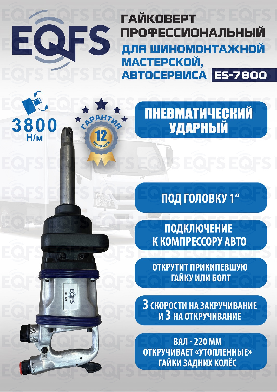 Технические особенности ES7800 Грузовой гайковерт 1":