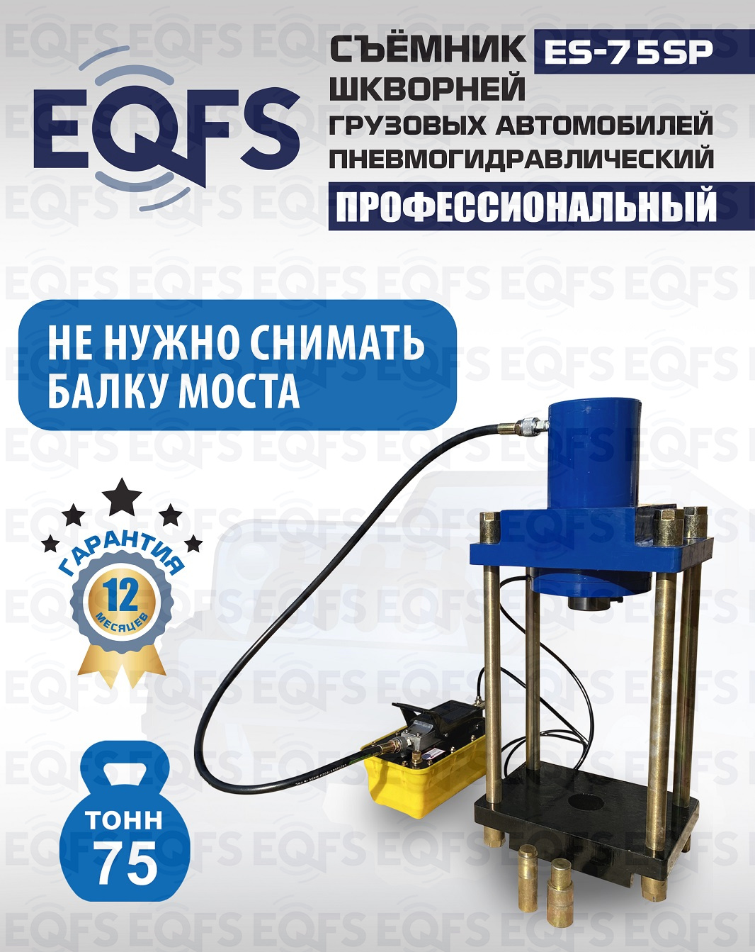Съемник шкворней грузовых автомобилей ES-75SP позволяет избегать следующих операций: