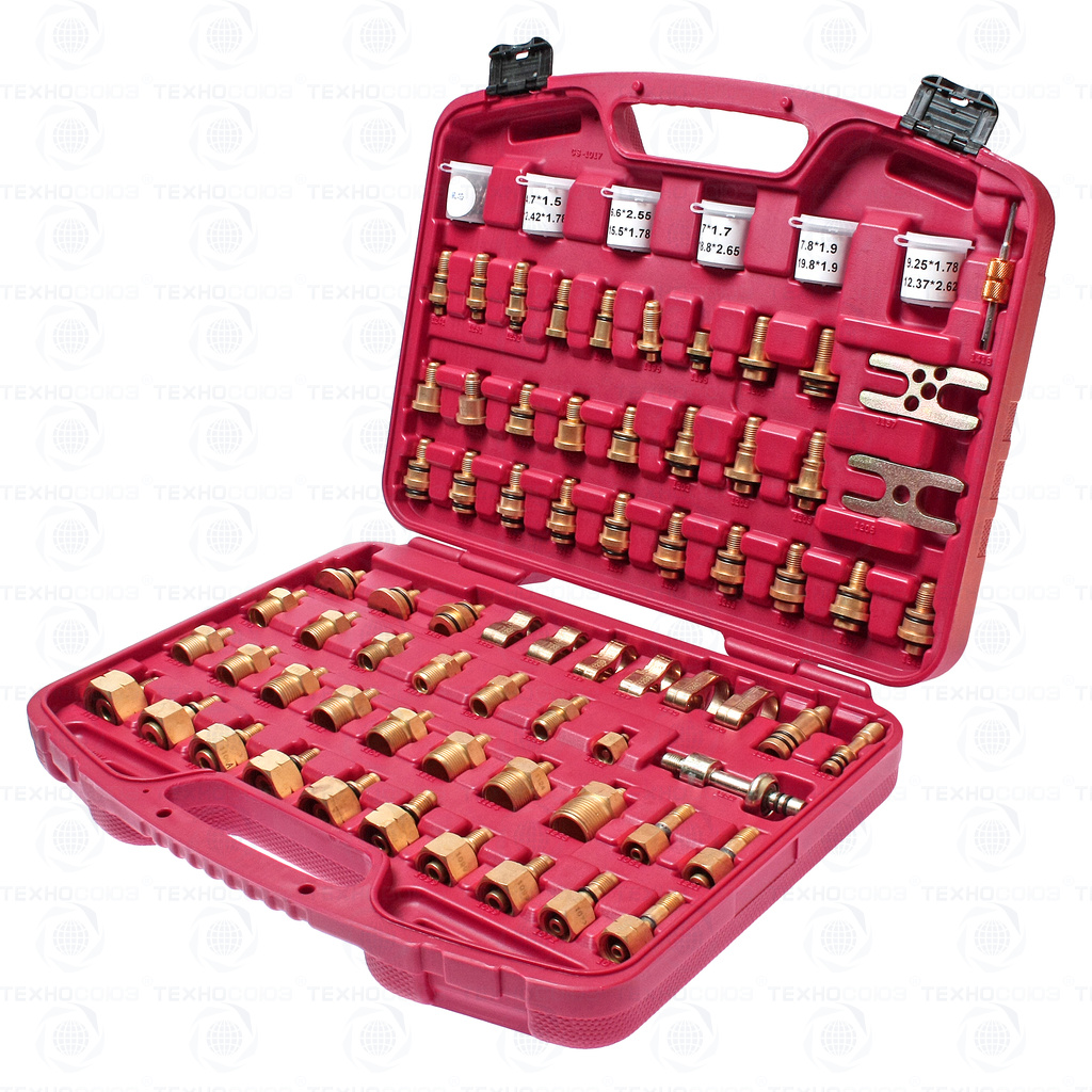 • В набор входят различные адаптеры для тестирования системы кондиционирования на предмет утечек.