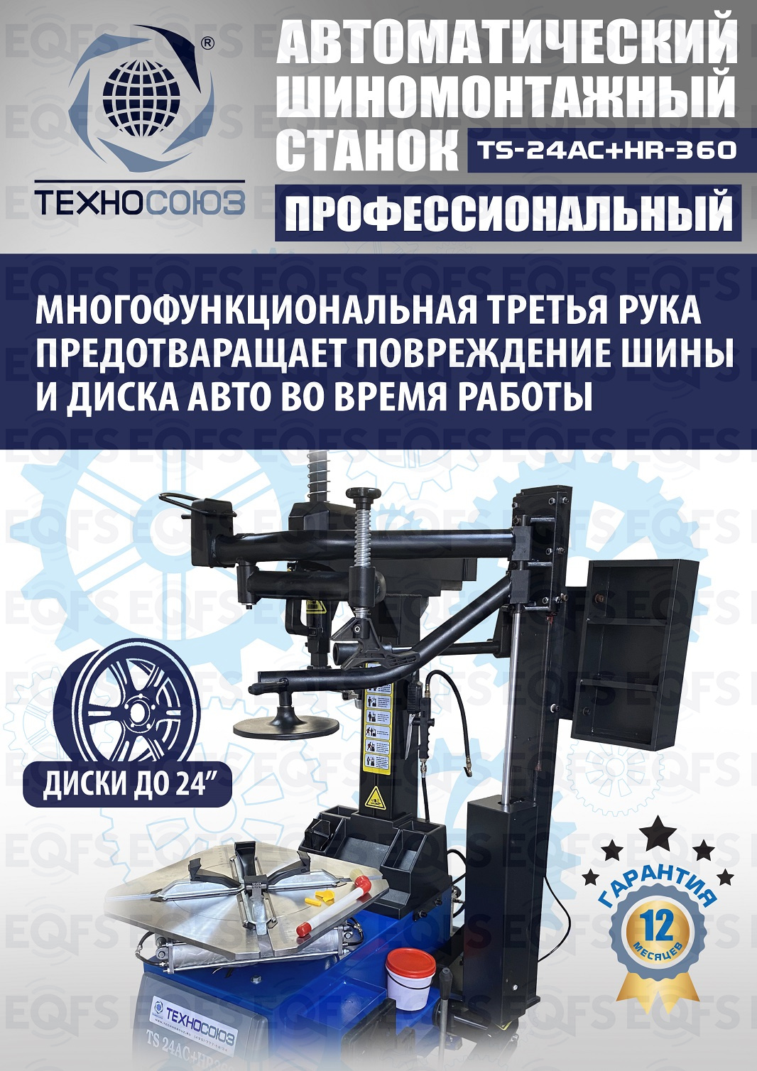 Автоматического шиномонтажного стенда TS-24AC+HR-360. В комплекте взрывная подкачка + третья рука для работы с низкопрофильными шинами и RanFlat! Для колес легковых автомобилей, легких грузовиков, микроавтобусов и коммерческой техники. Для дисков: внешний 10÷21”, внутренний 12÷24”. Напряжение 220/380В. Гарантия 18 мес. – наш монтаж, 12 мес. – самостоятельная установка.