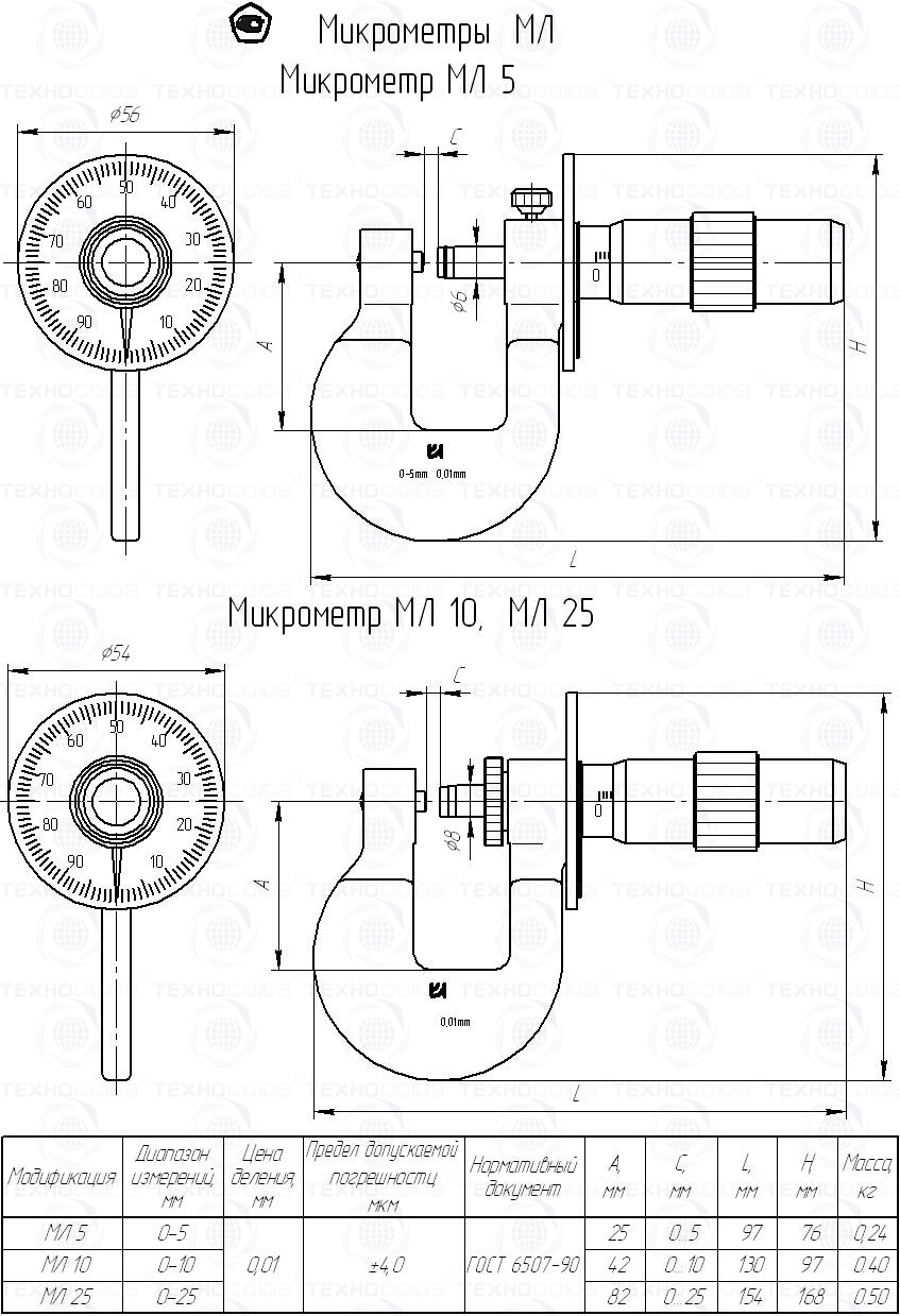 Цена деления 0,01 мм. Диапазон измерения от 0-25 мм. Микрометры МЛ. Предназначены для измерения толщины листов и лент. Измерительные поверхности микрометра оснащены твердым сплавом. Класса точности 2. ГОСТ 6507-90. Поставляется в двух вариантах с поверкой и без поверки!