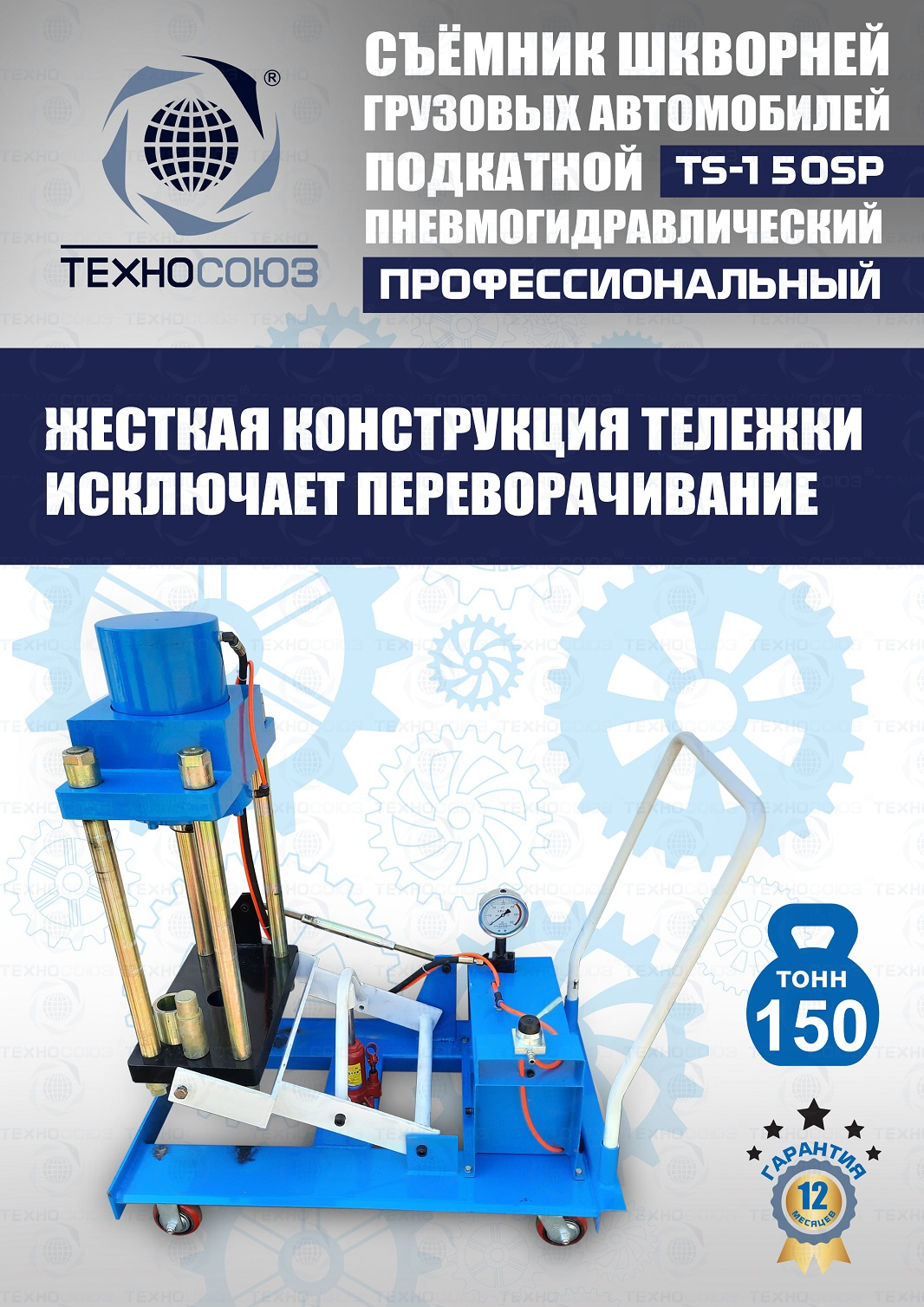 Жесткая конструкция передвижной тележки исключает переворачивание съемника шкворней